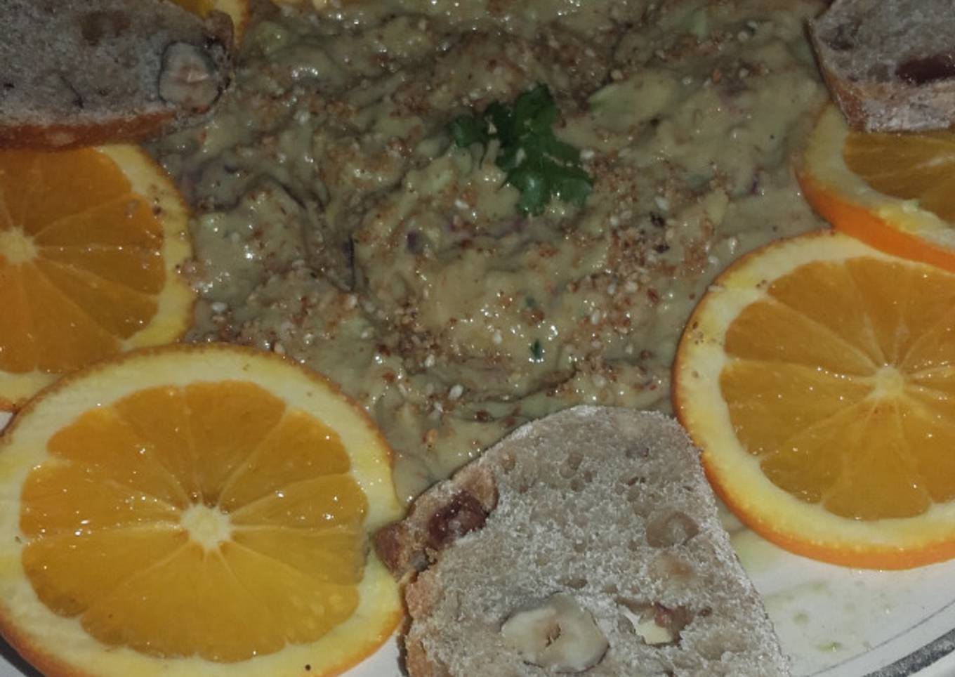 - Mélanger la pâte à l'avocat. Couper la 2eme orange en rondelles fines et les disposer autour de l'assiette. Soupoudrer de fleur de sel, de piment et de gomasio.