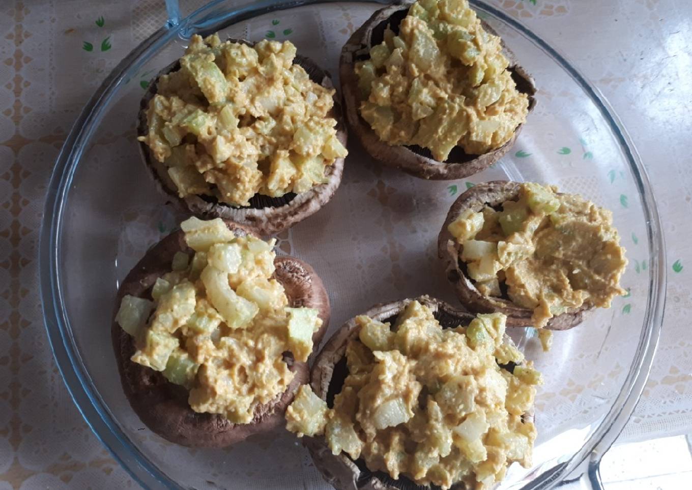 Steps to make to make Champignons bruns farcis au céleri et à la sauce Masala