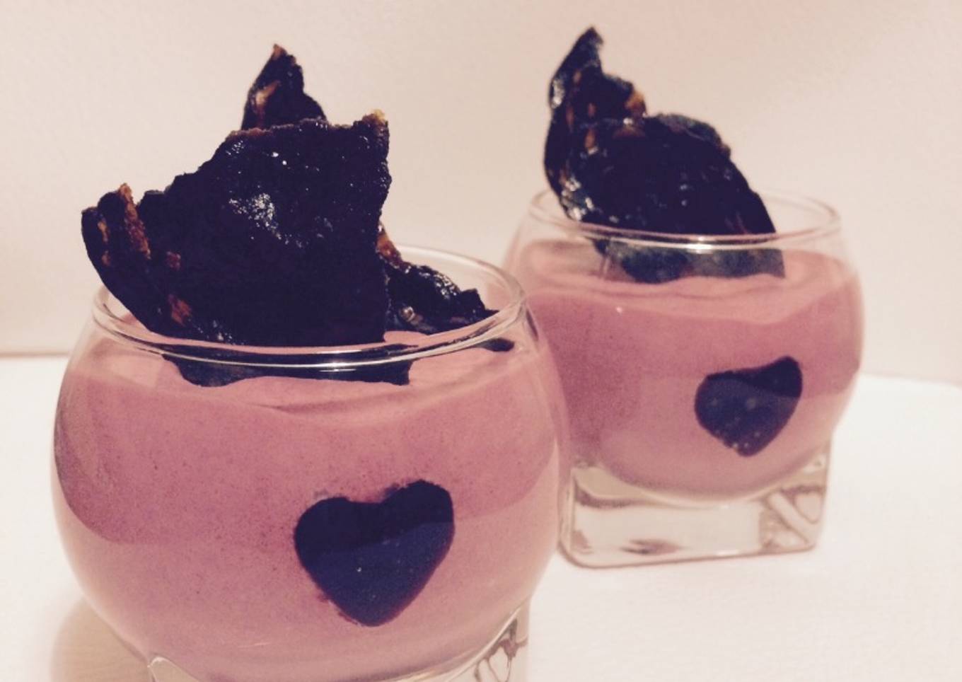 - Remplir les verrines et réserver au frais. Avant de servir casser la tranche de bacon séchée et la planter dans la mousse. Déguster frais.